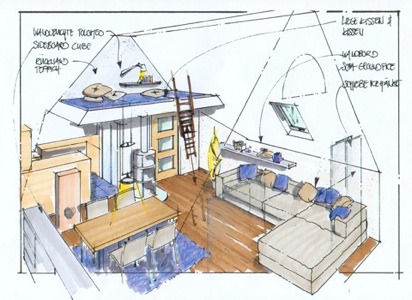 Entwurf Wohnen, Essen, Kochen